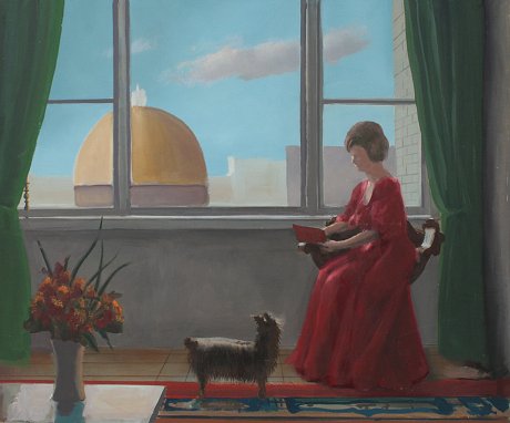 WHYTE, Raymond, (American, 1923-2002): Woman reading by the window with terrier on-looking, OIL/Masonite, 20'' x 24'', unsigned, unframed. From the Raymond Whyte estate. Est. $300/500**