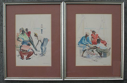 PULLINGER, D., (American , 20th C.): 2 Bahamian W/C, 10 1/2'' x 7 1/4'' sight size, signed and dated '56, silver gilt frame, 16'' x 12''.