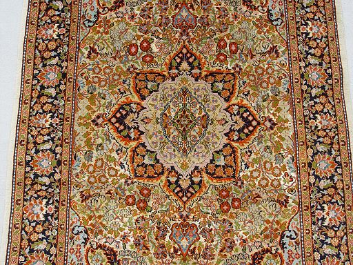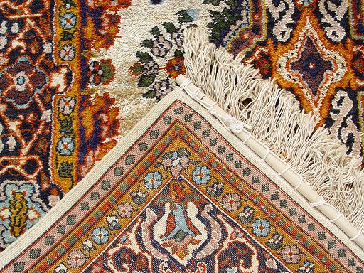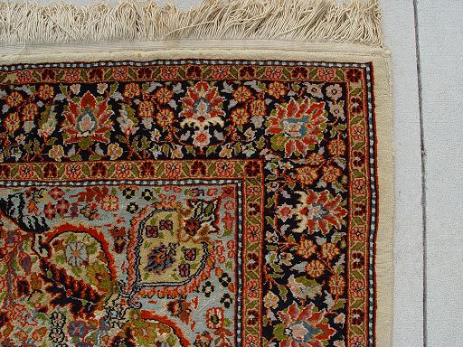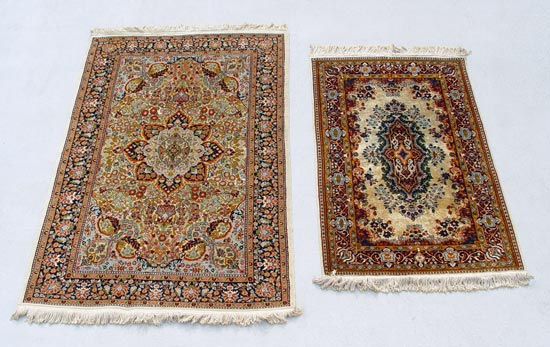 TWO HAND TIED FINE PAKISTANI RUGS: Never used on the floor, these rugs were hung on the wall. Possibly silk. One is approx. 4 x 6, the other 4'9 x 3'. These are not matched patterns but very complimentary in color.