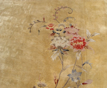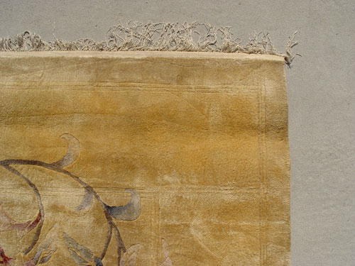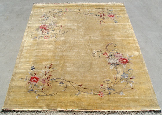 FINE CHINESE SILK CARPET: Approx. 12' 2'' x 10' 1 1/2'', fresh from Tinney Rug cleaners, but some spots still present.