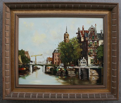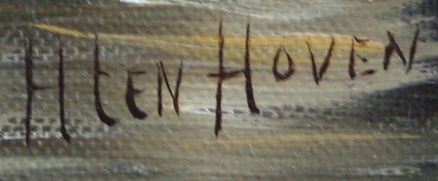 TEN HOVEN, Hendrik, (Dutch, 1901-): Dutch Canal Scene, Oil/C, 16'' x 20'', signed lower right, carved frame, 22 1/2'' x 26 1/2''.