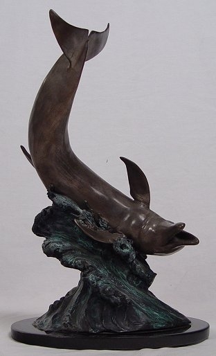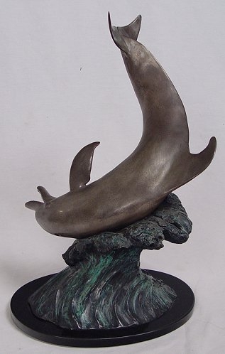 BELL, Christopher, (American, 20th C.): ''Summersault'', Dolphin BRONZE, Monogrammed and numbered 6/60, affixed to marble plinth. Approx. 22'' h. x 14'' x 16''.