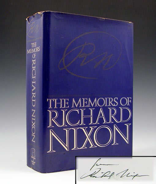 SIGNED RICHARD NIXON MEMOIRS BOOK: Personally signed with best wishes for Christmas in 1978 on bookplate to David E Tucker Jr. with letter for bookplate signature. Third printing. Note minor smear on signature, tear to dust jacket on spine.