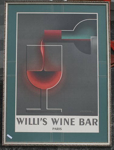 WILLI'S WINE BAR POSTER: After Cassandre, framed in silver gilt, 46'' x 34 1/2'' overall. Est. $200/400**