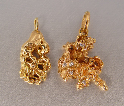 TWO 14K GOLD NUGGET PENDANTS: Two 14K yellow gold nugget pendants. Weight: 13.6 grams.