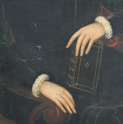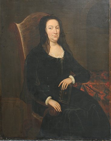 18TH/19TH CENTURY ANCESTRAL PORTRAIT OF THE WIDOW: OIL/C, 50'' x 40'', no visible signature, exceptional detail to her facial features, garments and fingers, unframed. Condition - Has been relined with scattered in-paint throughout.