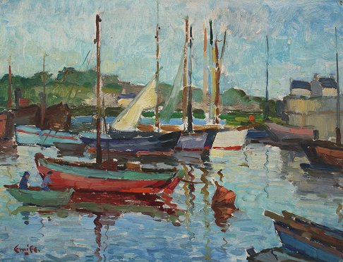 VIEGERS, Emile, (Dutch, 1921-): ''Harbor of Concarneau, France'', OIL/B, unframed, 12'' x 16'', signed, titled verso.