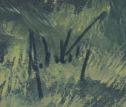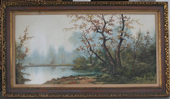 DEVITY, Antonio, (Italian): River Landscape, OIL/C, 24'' x 48'', signed, Devity Studios stencil verso, framed, 32'' x 56''. Small puncture taped verso, 2 depressed knuckle size areas.