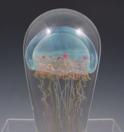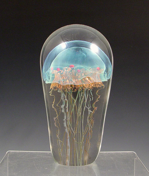 SATAVA, Richard, (American, 20 th C.): Real life detail art glass Jellyfish Sculpture. Signed Satava and numbered 695-98. 5 3/4''h. Est. $200/400**