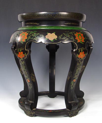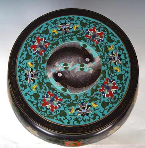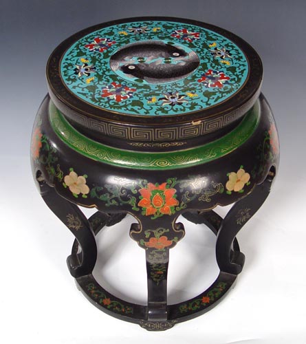 CHINESE STAND WITH CLOISONNE INSERT TOP: Measures 20 1/2'' high x 18'' overall dia.