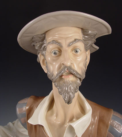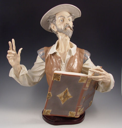 LLADRO PORCELAIN LISTEN TO QUIXOTE 1520: Limited edition of 750. Original sculpture by Salvador Furio. 20''h x 19'' x 13''. Retired in 1995. Sold with certificate.