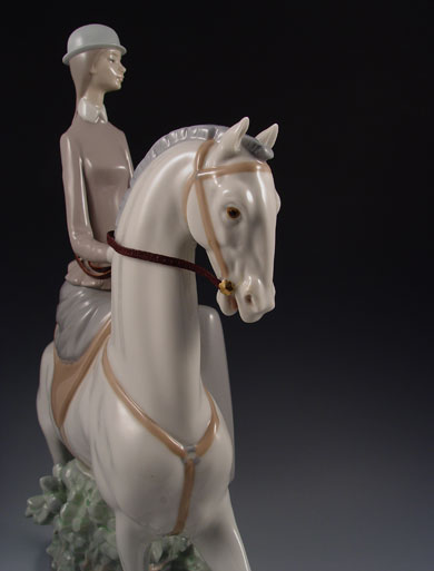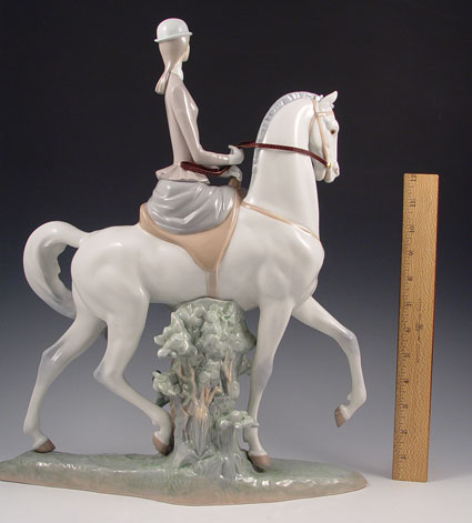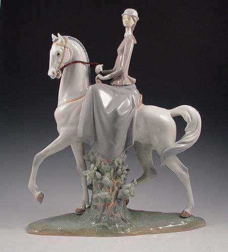LLADRO PORCELAIN WOMAN ON HORSE ''Amazona'' 4516: Female Equestrian. Sculptor Fulgencio Garcia. Glazed finish, 14 3/4''h x 6'' x 17 1/2''.