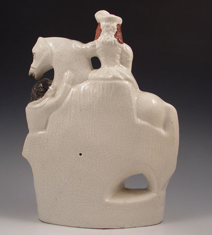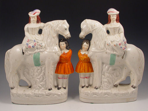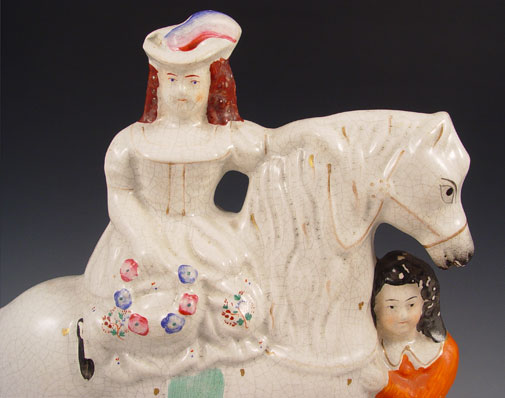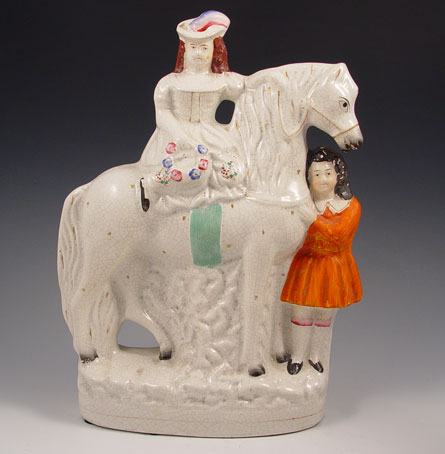 PAIR BONNIE PRINCE WILLIAM STAFFORDSHIRE MANTLE FIGURES: Measure 13'' high x 10'' wide x 3'' deep. Condition: Note crazing.