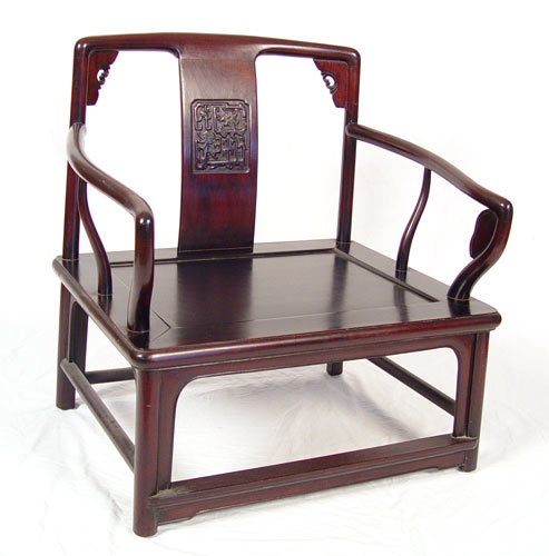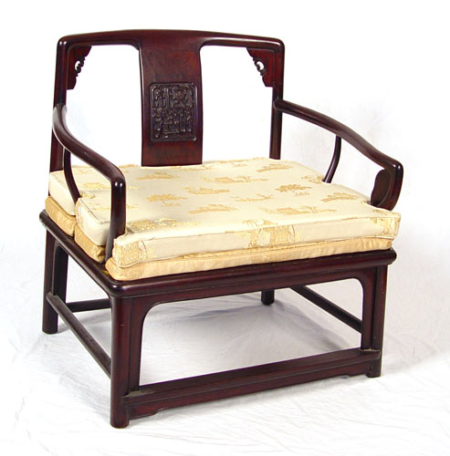 CHINESE LOW BACK ARM CHAIR: Measures 31 1/4'' high x 29'' x 25''