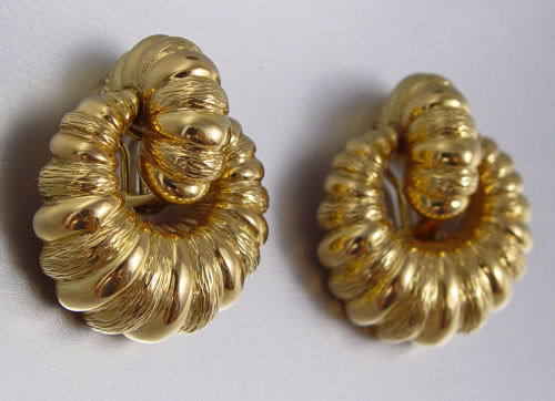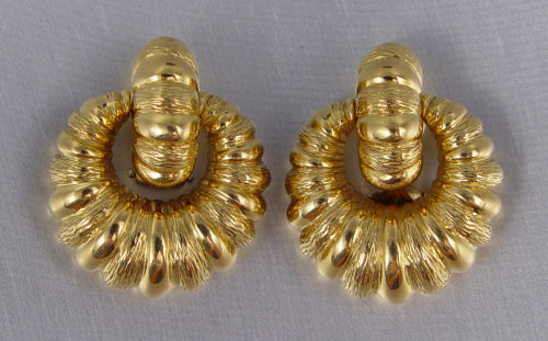 18K GOLD ''SHRIMP'' HOOP EARRINGS: 18K yellow gold ''shrimp'' hoop earrings. Hinged clip closures. Weight: 31.9 grams.
