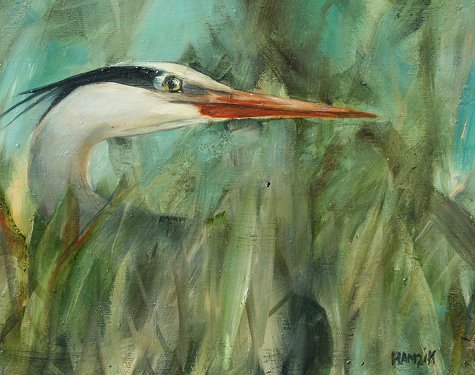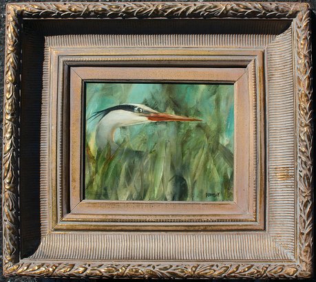 HAMZIK, Gerry, (American, 20th C.): Florida Heron, Oil/Canvas, Signed Hamzik: 8''x 10''. Gilded and carved frame, with wear, 17 1/4'' x 19 1/4''. Est. $200/400**
