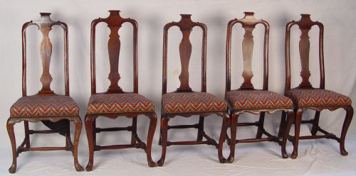 19TH C SET OF 6 QUEEN ANNE SIDE CHAIRS: Approx. 43 3/4''h., seat 19 1/2''h., 20 1/2''w. knee to knee.
