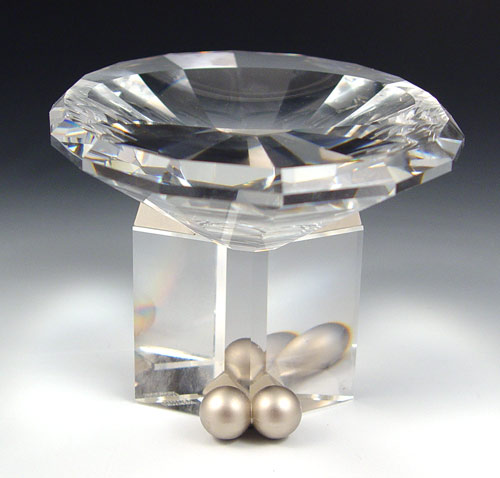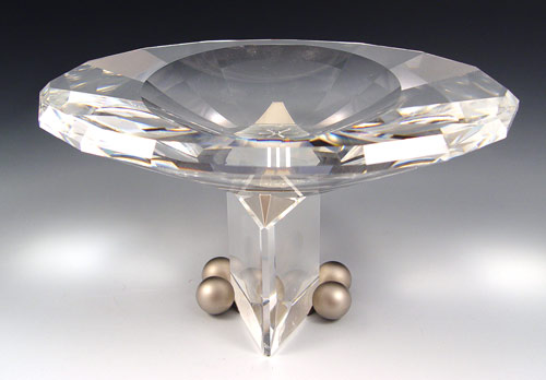 SWAROVSKI CRYSTAL COMPOTE: With original box. Measures 3 5/8'' high x 6 3/4'' x 4 3/8''. Box measures 6'' x 12'' x 8''.