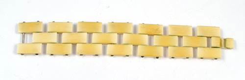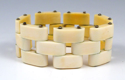 VINTAGE 1940'2 IVORY BRACELET: Wide bracelet of 21 hinged links, with one as the hidden closure. 7 1/2'' long, 1 1/8'' wide.