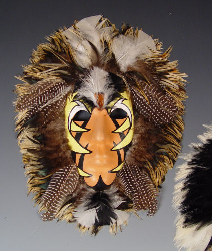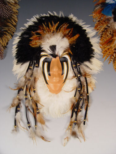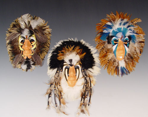 3 PIECE R. W. ADAMSON AMERICAN INDIAN MASKS: Collection of 3 masks by noted artist R. W. Adamson, all signed and numbered with Certificate of Authenticity and original boxes. Feather and plastic construction. Largest mask measures 15''. Boxes measure 3'' high x 22'' x 13 1/2''
