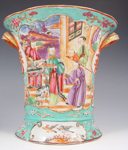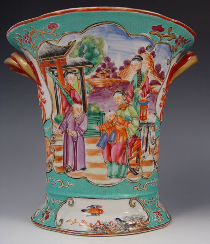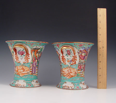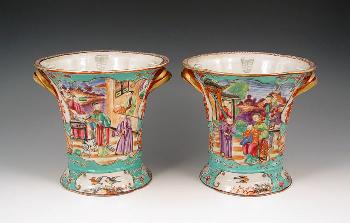 PAIR CHINESE EXPORT BOUGH POTS / VASES: Measures 6 1/2'' high x 7'' x 6 5/8''
