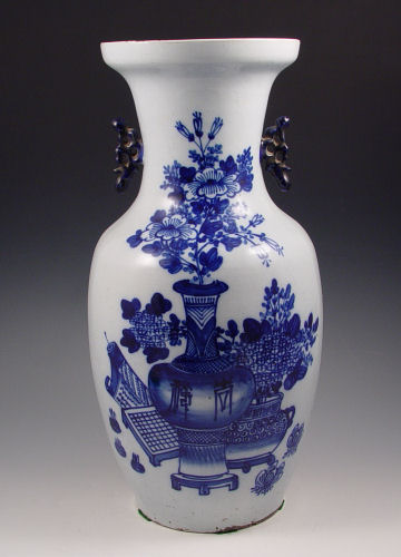 LATE 19TH C. CHINESE EXPORT COBALT DECORATED VASE: 17'' high x 8'' dia., unsigned.