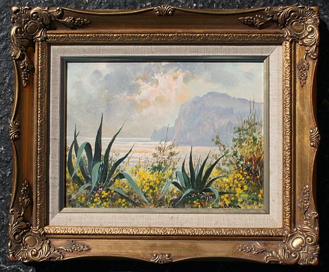 ODIERNA, Guido, (Italy, 1913-): Coastal Capri with agave, OIL/Canvasboard, 9'' x 12'', signed, framed, 14 1/2'' x 17 1/2''. Est. $200/400**
