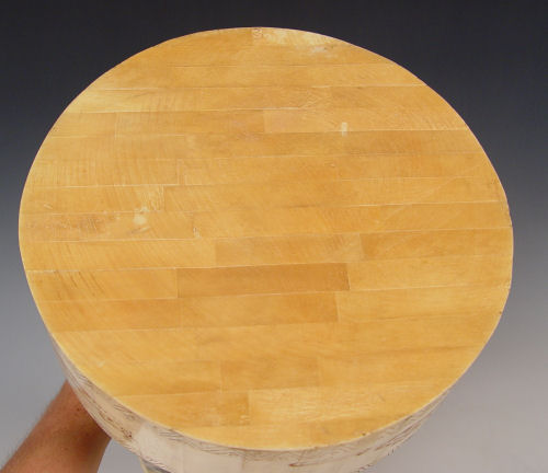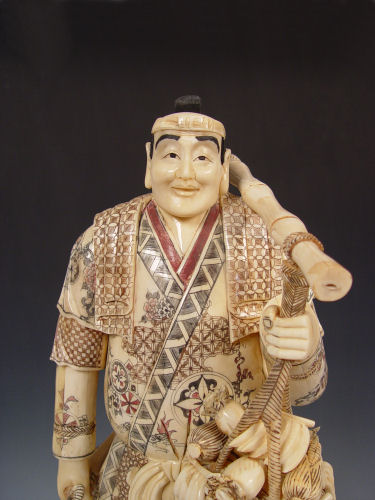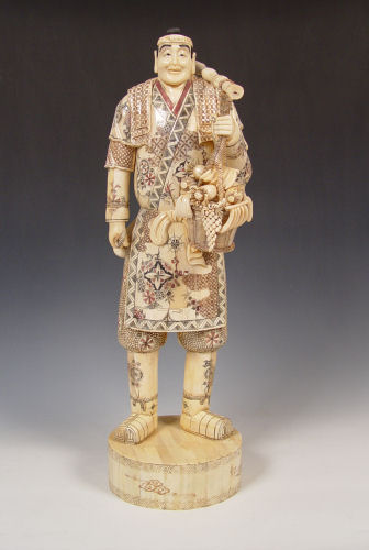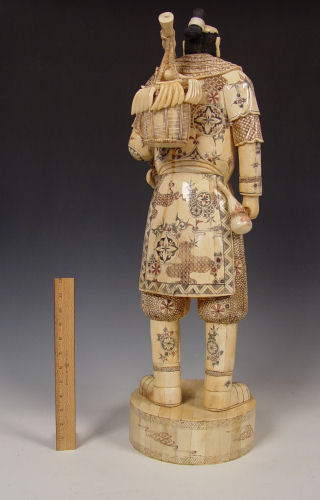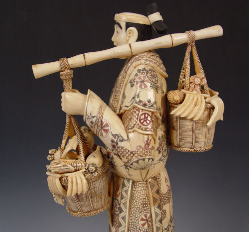 ALMOST THREE FEET TALL CHINESE CARVED AND CLAD BONE FRUIT SELLER: Detailed scrimshaw. Measures 30 1/2'' x 13''