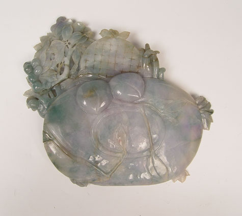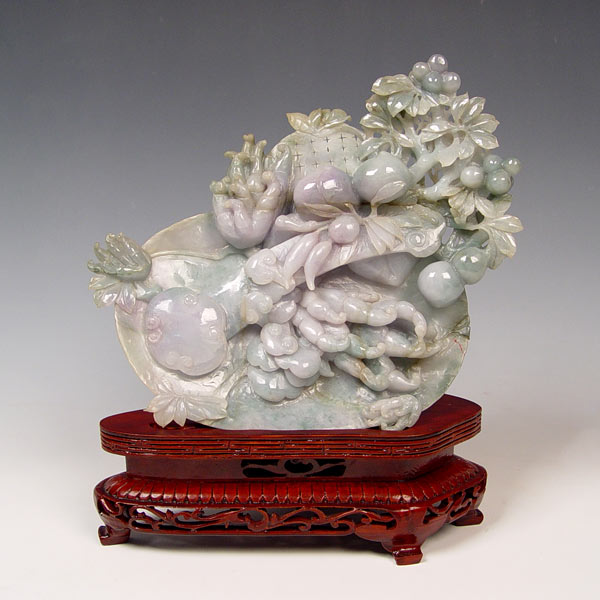 LARGE CHINESE CARVED FRUIT TREE CARVING: Carving measures 9 3/4'' high x 11'' wide. On stand with back support, stand measures 8'' high x 10'' x 5 1/2''