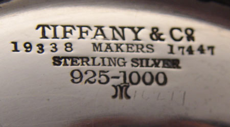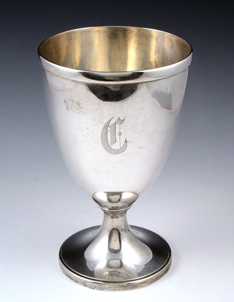 TIFFANY & CO STERLING CHALICE VASE: Marked on base Tiffany & Co. 19338 Makers 17447 Sterling Silver. Measures 8 3/4'' high x 5 3/8'' top dia. Monogrammed C. Approx. 23 troy oz. Please note several pin sized dings.