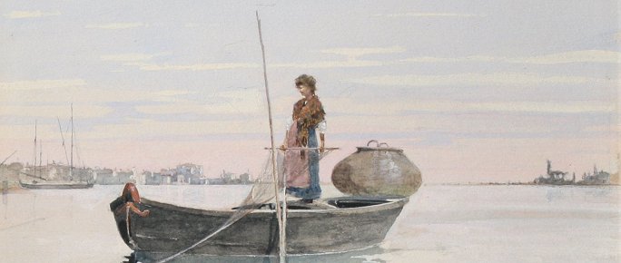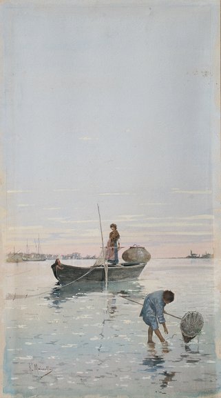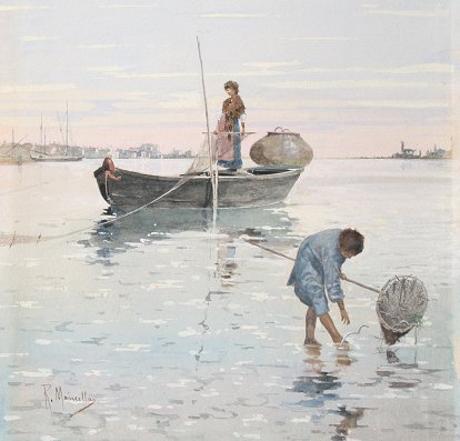 MAINELLA, Raffaelle, (Italian, 1858-1907): Fisher Folk at Work, W/C, 13 1/2'' x 7 1/2'', signed, unframed.