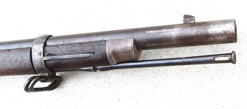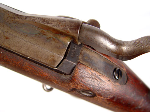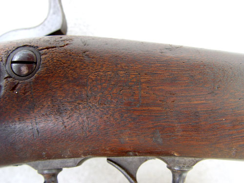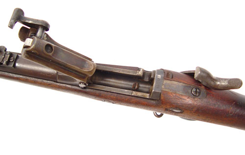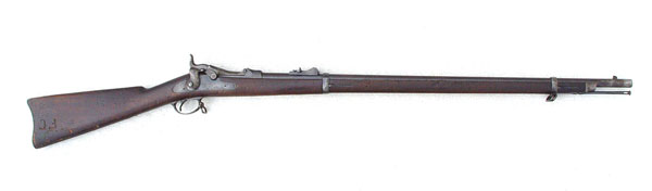 MODEL 1873 US SPRINGFIELD TRAPDOOR RIFLE: Serial number 421XXX range, which dates to 1888. Well marked with US Springfield and eagle on lock, inspector marks on barrel, cartouche on stock opposite lock. Previous owners initials ''FC'' crudely engraved on butt stock. Excellent bore, traces of case color on trapdoor. Original cleaning rod. Please note several scratches, gouges on stock. Barrel measures 31'', overall 52''