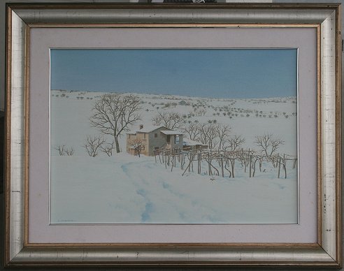 MURINKO, Joska, (Italian, 20th C.): ''Paesaggio Invernale'', Italian Vineyard in Winter, O/C, 19 3/4'' x 27 1/2'', signed, signed and titled verso, silver gilt frame with minor wear, artist label verso.