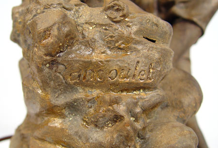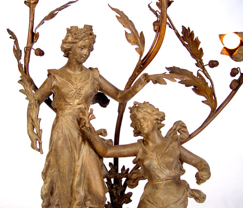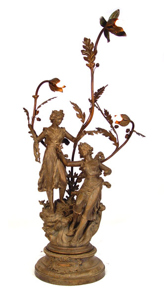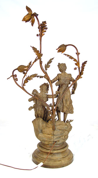 ART NOUVEAU FIGURAL LAMP: Titled ''La Feconinte de la terra L'Onde''? after Rancoulet. Measures 40 1/2'' high x 19 3/4'' wide x 14'' deep.
