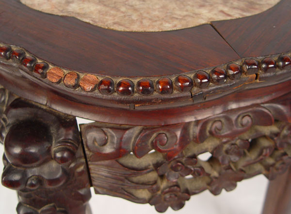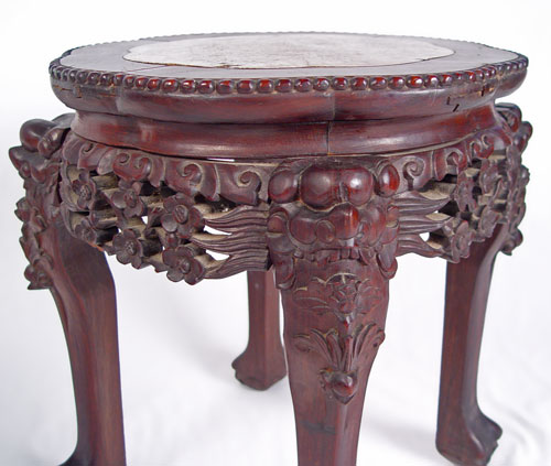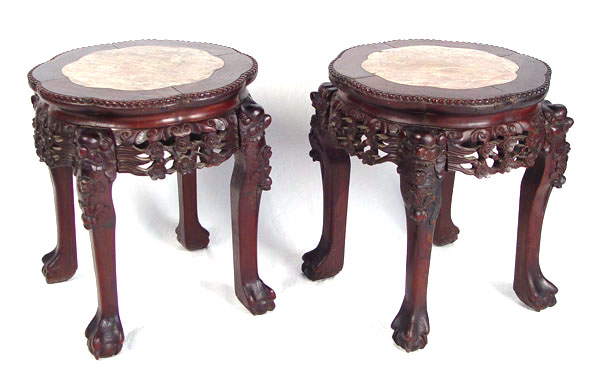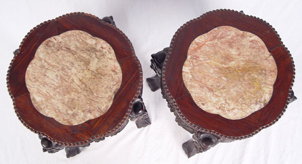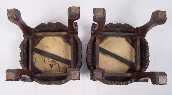 PAIR CHINESE MARBLE INSET CARVED STANDS: Measures 18'' high x 15 1/4'' dia.
