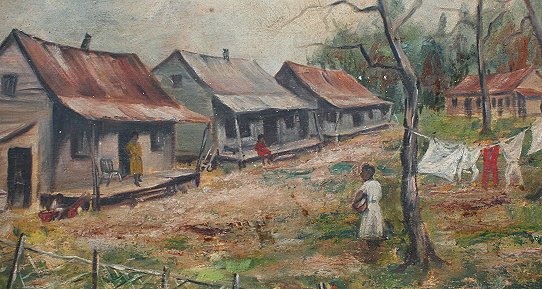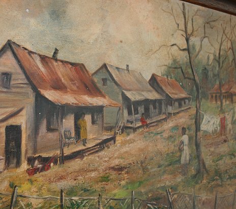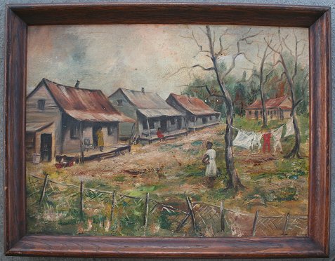 SOUTHERN BLACK POVERTY PAINTING: Oil/Canvas, 18'' x 24'', unsigned, framed, 21'' x 27'', circa 1940. Needs cleaning, several flecks of paint loss, minor cracklure in area of heavy impasto.