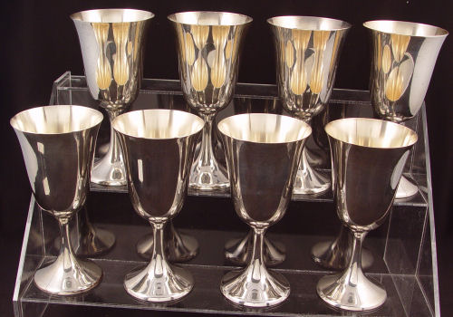 8 MANCHESTER STERLING WATER GOBLETS: Hallmarked Manchester Silver Co. Sterling 808. Measures 6 5/8'' high. Approx 39.9 troy oz.