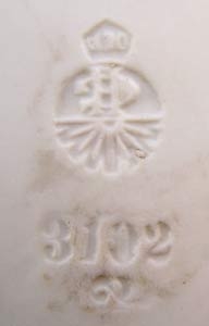 SIGNED HEUBACH PIANO BABY: 8''l, impressed mark.