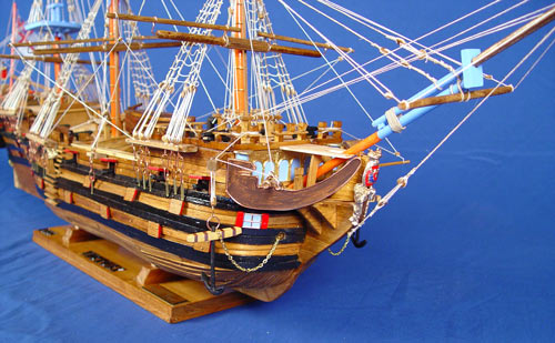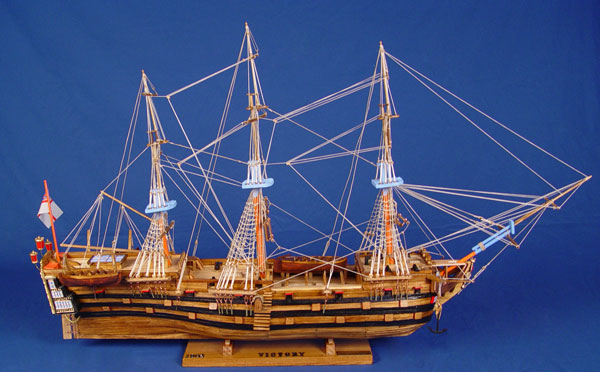 LARGE HAND CRAFTED WOOD SHIP MODEL HMS VICTORY: Completely hand made model of the HMS Victory with attention to detail. Measures 29'' high x 48 1/2'' long x 8'' wide.