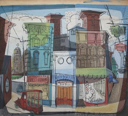 EXCEPTIONAL CALIFORNIA STYLE PASTEL CITY SCENE SIGNED ZIMMER: 21'' x 23'', unframed. Fold in upper margin.