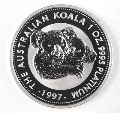 1997 KOALA 1 OZ PLATINUM AUSTRALIAN $100 COIN: 1997 Koala 1 oz of .999 platinum. Cased in protective cover.