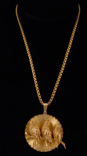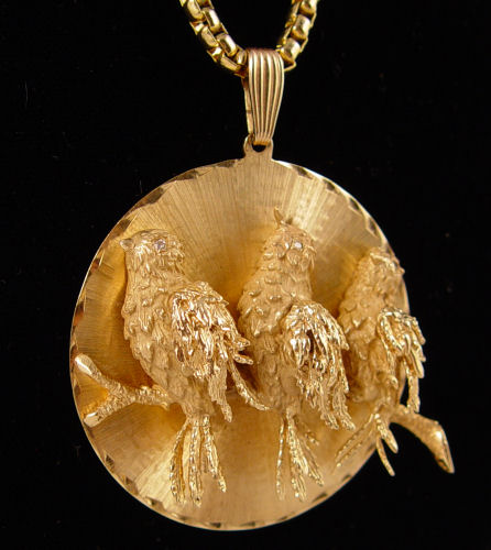 LARGE 14K THREE DIMENSIONAL BIRD PENDANT AND CHAIN: The pendant is 1.75'' dia., the box chain is 16''. 43.8 grams overall. No Reserve.
