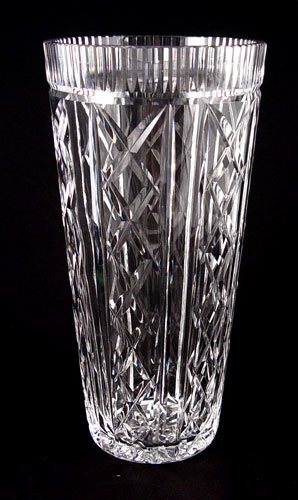 SIGNED WATERFORD CUT CRYSTAL VASE: Measures 12'' high x 6'' top dia.