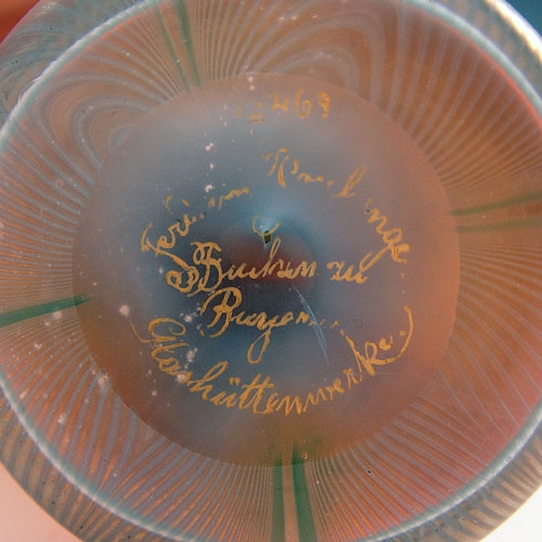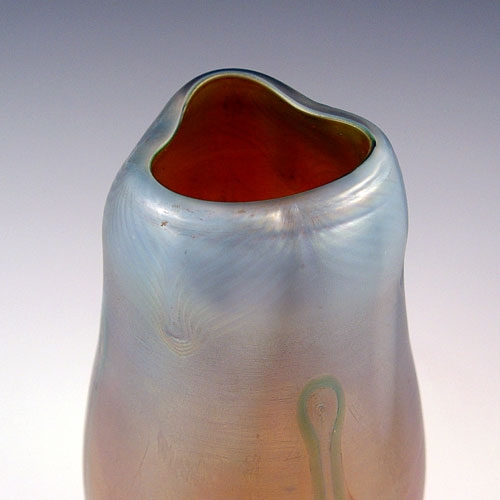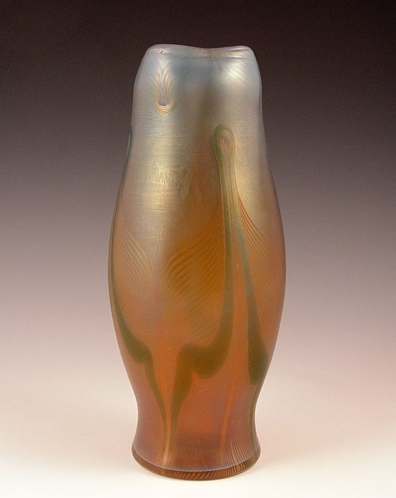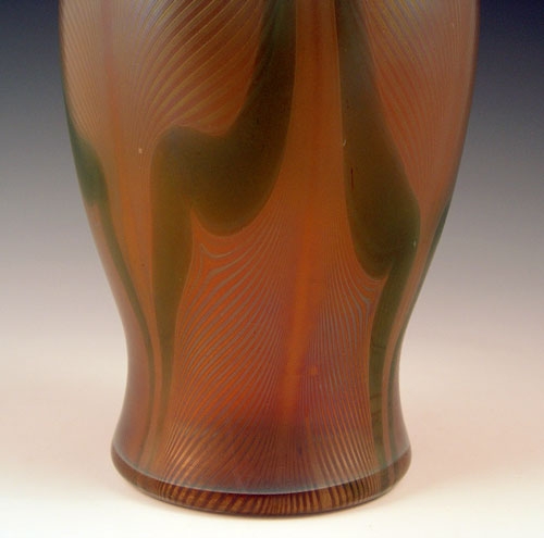 FERDINAND VON POSCHINGER BUCHNEAU BOHEMIAN IRIDESCENT ART GLASS VASE: Pulled feather design, 9''h. Buchenau Glassworks was destroyed by a snow storm in 1935. Von Poschinger was a designer from 1890-1900.