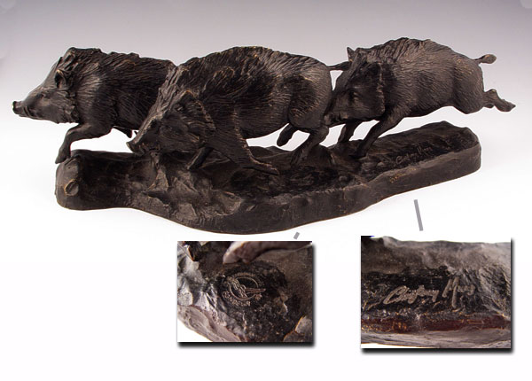 MAAS, Christian, (1951-): Boar Grouping, Bronze, 18'' l. x 6'' h., signed, fondeur mark.