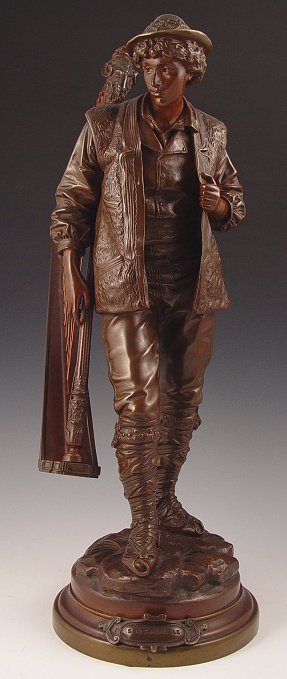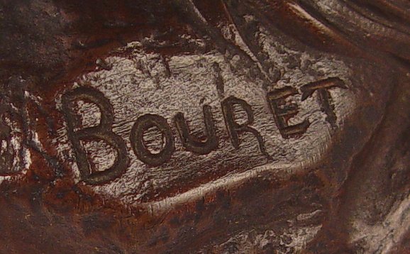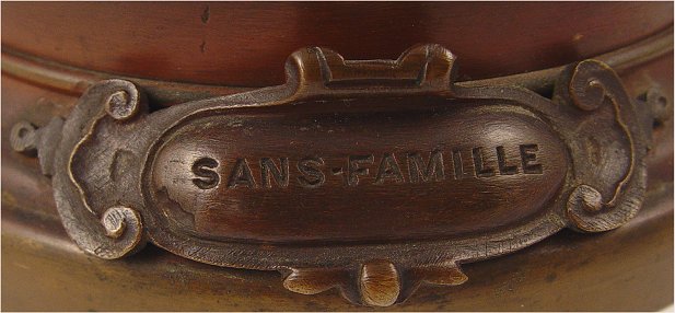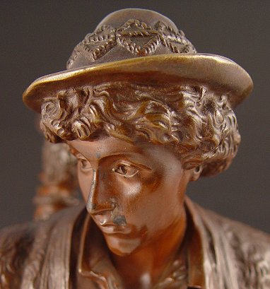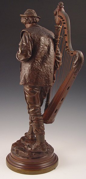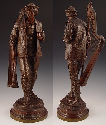 BOURET, Eutrope, (France, 1833-1906): Sans Famille, Bronze, 19'' high, Paris bronze stamp. Note replaced copper wire to harp strings.