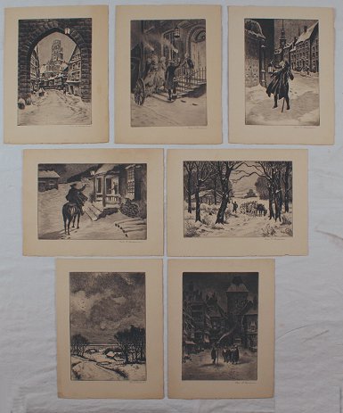 BERDANIER, Paul F, (American, 1879-1961): 7 Etchings of various scenes, 8 1/2'' x 10'', all pencil signed, unframed.