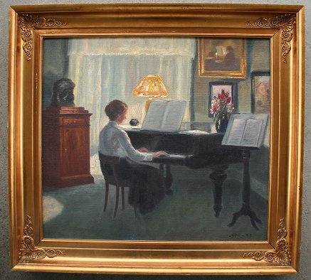 KLIIM, Lars, (Denmark, 20th C.): Piano Recital, OIL/C, 19'' x 21'', signed and dated 1919, framed, 23'' x 25''.