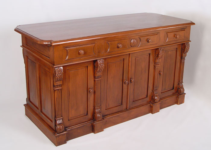 DECORATIVE KITCHEN ISLAND CABINET: Newly constructed of reclaimed antique wood. 6 drawers, 6 cabinets. Classic design. Measures 37 3/4'' high x 72'' wide x 31 1/2'' deep.