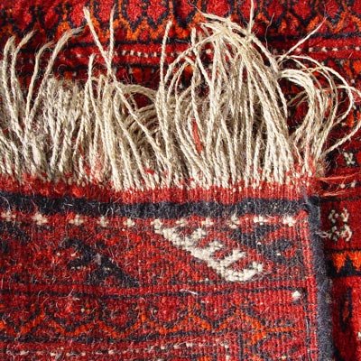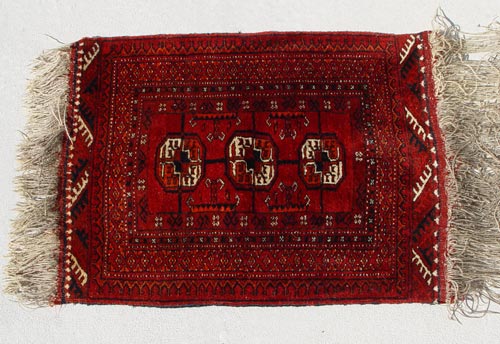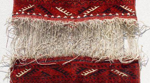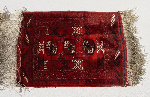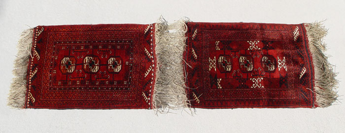 AFGHANI ''FATHER & SON'' RUG: Two small rugs joined by fringe, 5' 6'' x 22''.